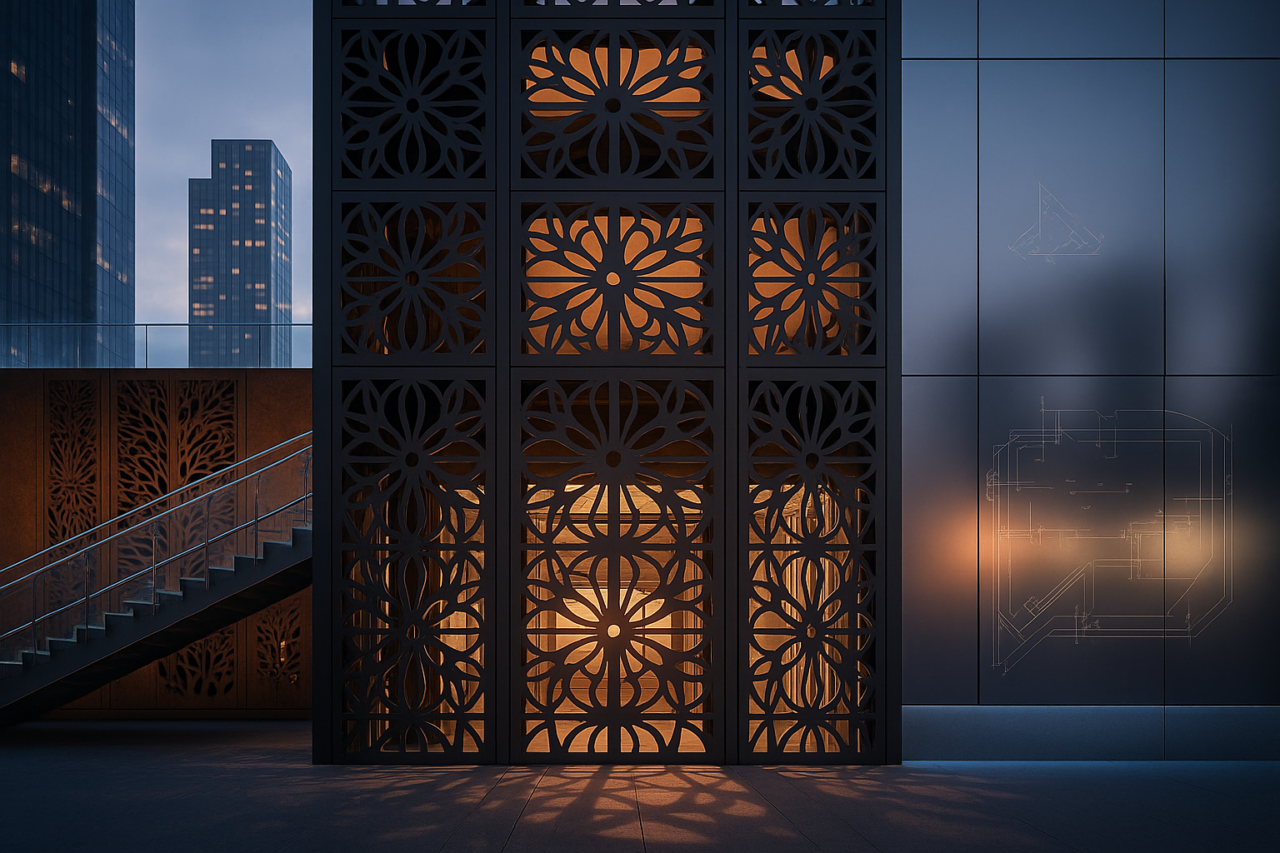 เลเซอร์สามารถตัดลวดลายซับซ้อนได้อย่างคมชัด เช่น ลายฉลุ (Perforated Panels) สำหรับ Facade อาคาร หรือแผงกันแดด (Sunshade) ที่มีดีไซน์เฉพาะตัว